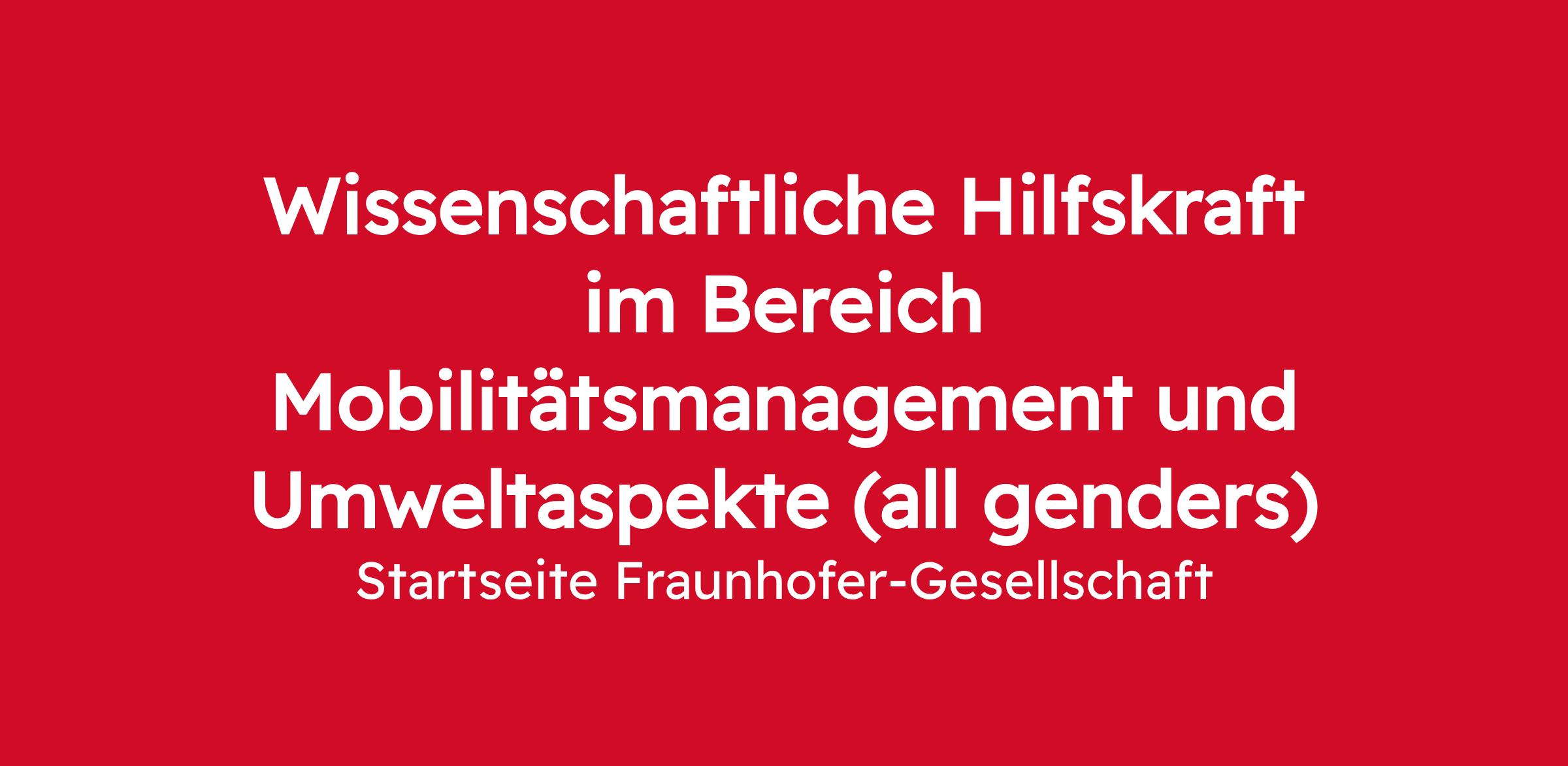 Das Projektzentrum des Fraunhofer-Institut für Materialfluss und Logistik IML »Verkehr, Mobilität und Umwelt« in Prien am Chiemsee arbeitet im Bereich Mobilitätsmanagement und Umweltaspekte unter anderem in den Themenfeldern nachhaltige, intermodale und vernetzte Mobilität in Städten und ländlichen Regionen sowie Digitalisierung und Mobilitätsdatenräume. Wir entwickeln innovative Konzepte mit Unternehmen aus der Wirtschaft und im Rahmen von nationalen und internationalen Forschungsaufträgen. Zur Verstärkung unseres Teams suchen wir ab sofort eine engagierte wissenschaftliche Hilfskraft.